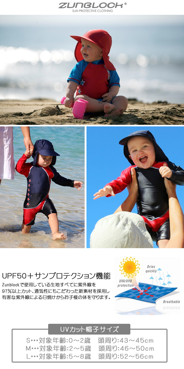 Zunblock ラッシュガード サントップ 2450514 上下セット 適正身長98cm〜104cm お子様の紫外線対策には必需品