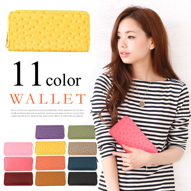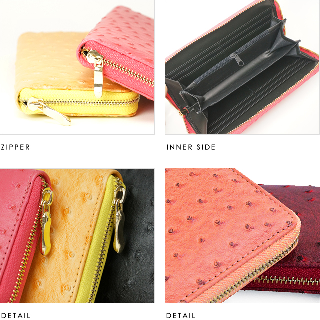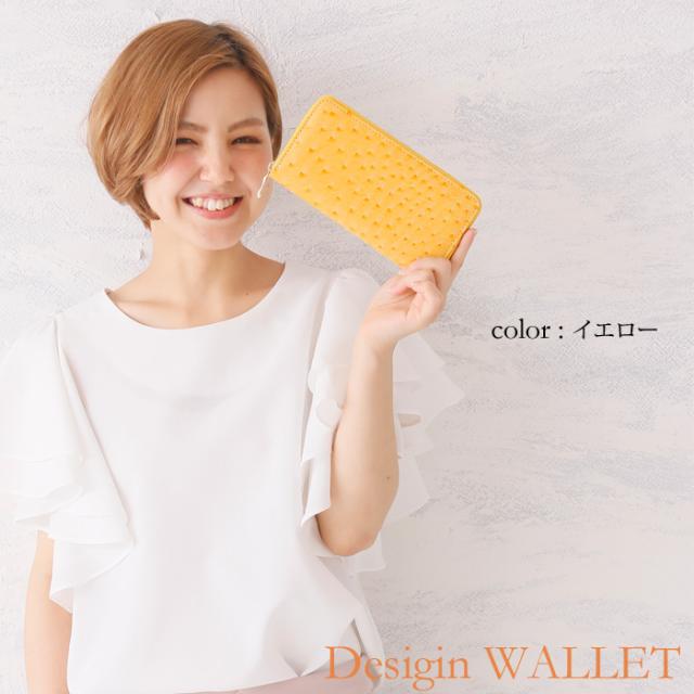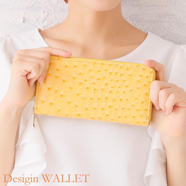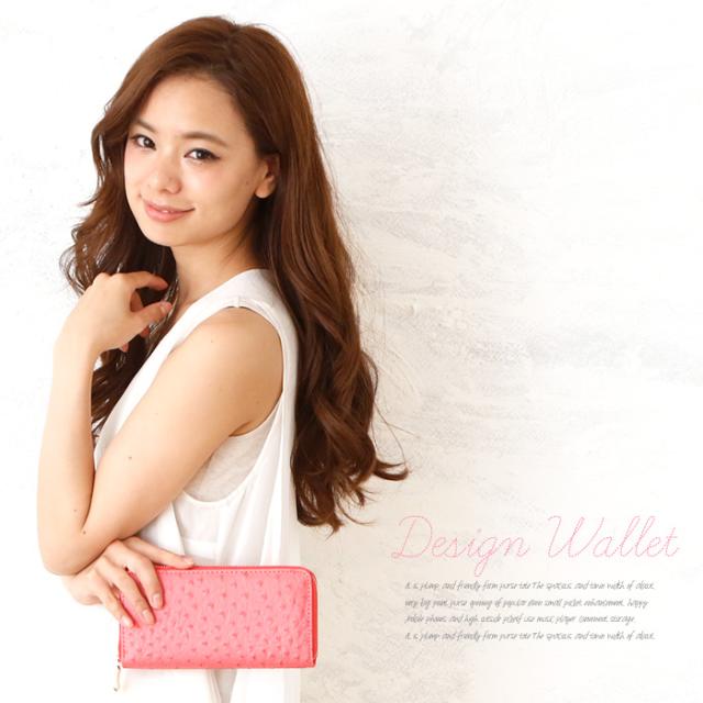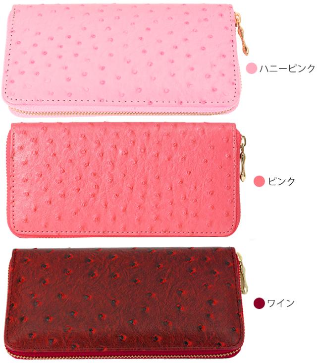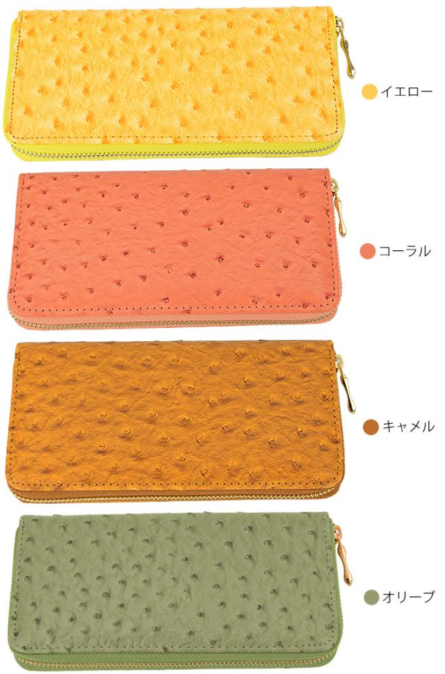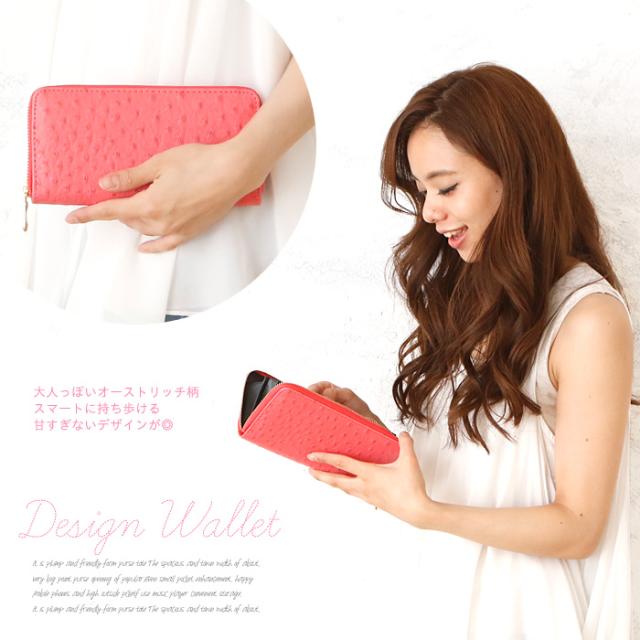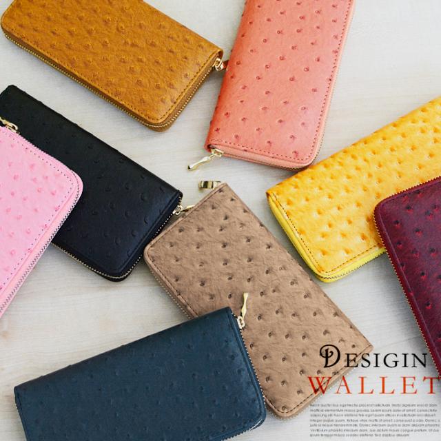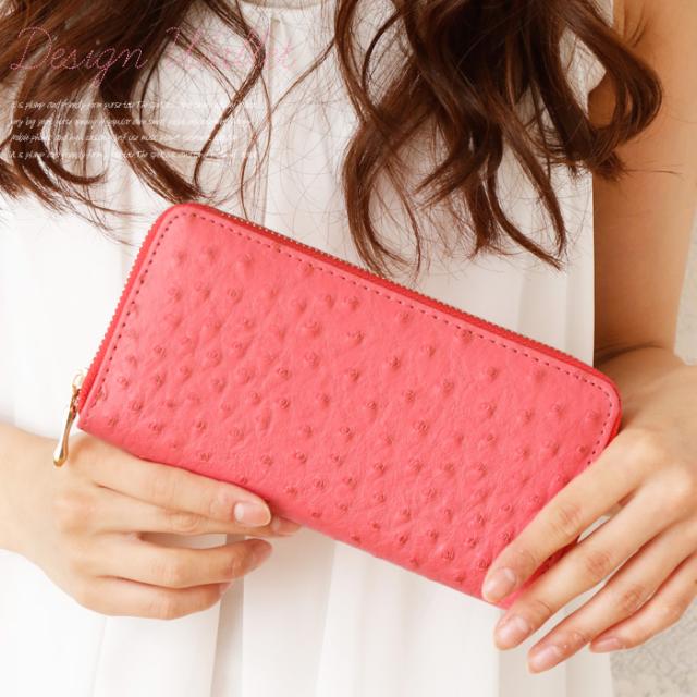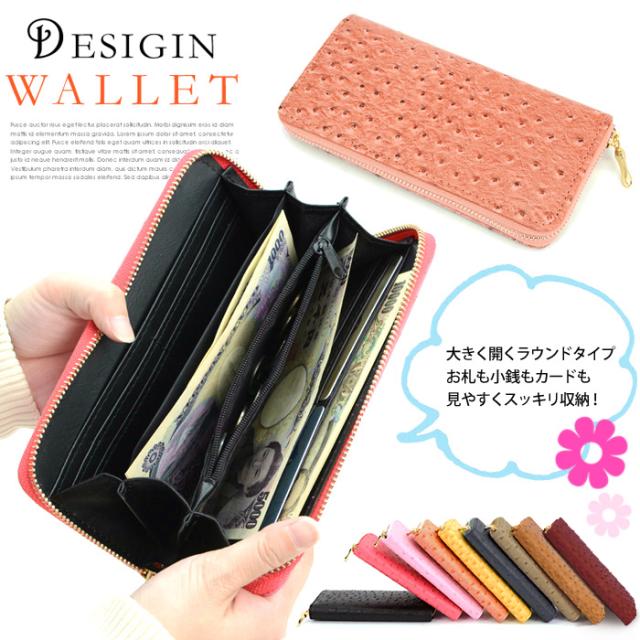 長財布 レディース オーストリッチ エンボス加工 型押し ラウンドファスナー 長財布 (ar-SLG-AUSm)メール便【送料200】 財布 おしゃれ 大人 かわいい 上品 無地 シンプル カード 収納 小銭入れ ジャバラ式 多収納 女性 プレゼント プチプラ 黒 ブラック キャメル ネイビー