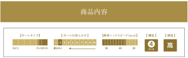 【構造】4ピース【ディンプル】WEBディンプル302【コア】高反発スーパーソフトエナジーコア【インナーカバー】ビッグインパクトシェル【ミッドカバー】高速ドライブカバー【アウターカバー】高耐久ソフトアイオノマーカバー