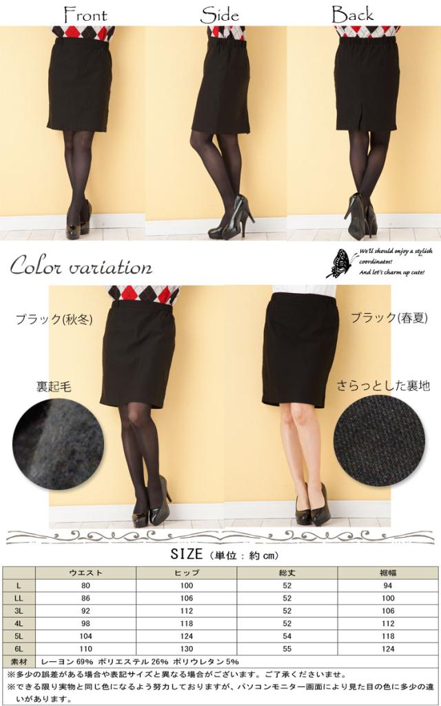 秋新作 大きいサイズ とっても伸びる&裏起毛♪ スカート ハーフ丈 ひざ丈 スーツ オフィス ストレッチ 秋冬 伸縮性 大きめ ゆったり 春夏 通勤 楽チン 楽 膝上 無地 Lサイズ LLサイズ LL 2L 3L 4L 5L 6L 11号 13号 15号 17号 19号 21号 black 黒 クロ ブラック