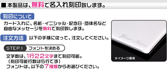 文字は自由に刻印できるので世界で1つだけの名刺入れを作ることができます!