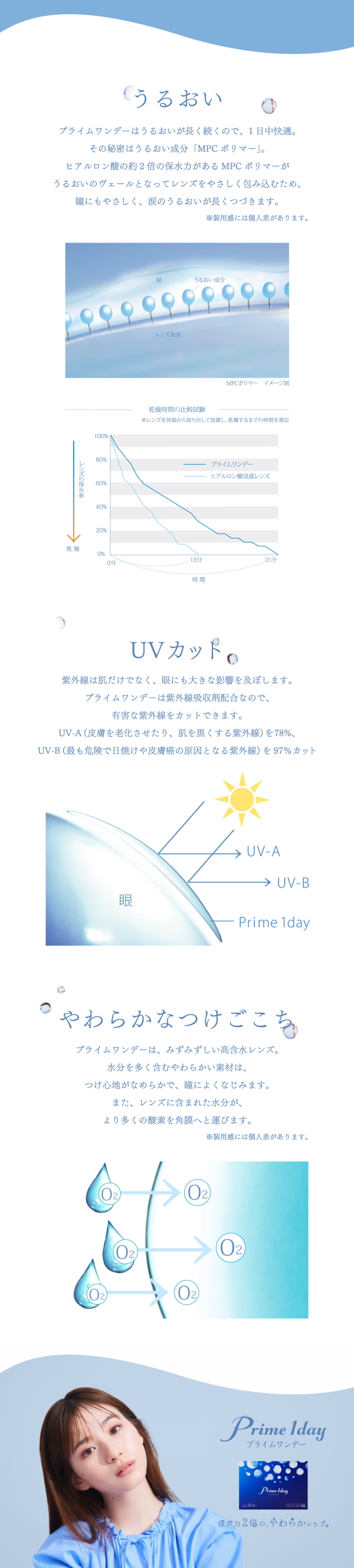 プライムワンデー 1箱 30枚入 1日使い捨て ポスト便 送料無料 コンタクトレンズ 小松菜奈 ワンデーアキュビュー と同じ高含水素材