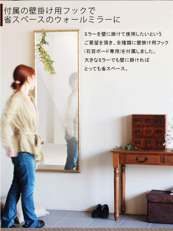 アンティーク 鏡 ミラー 壁掛け 姿見 おしゃれ 姿見鏡 玄関用 全身鏡 姫系 F-008SM2015 ◎