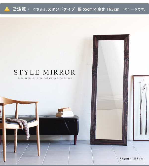 スタンドミラー 全身 おしゃれ ワイド 鏡 姿見 木製 西海岸風 インテリア 木枠 style SM4015 ▽