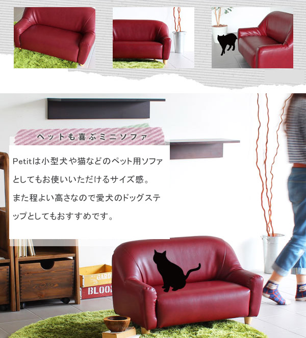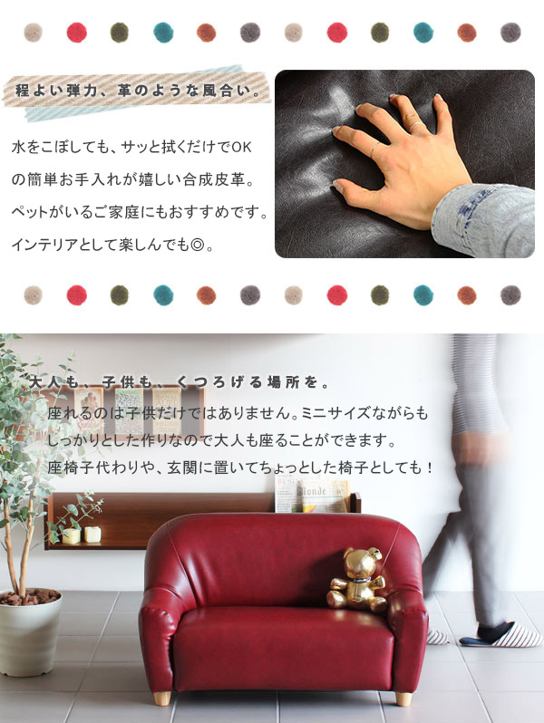 ミニソファ 2人 かわいい 子供用ソファー キッズソファ ローソファー レザー Petit プティ 合皮 □