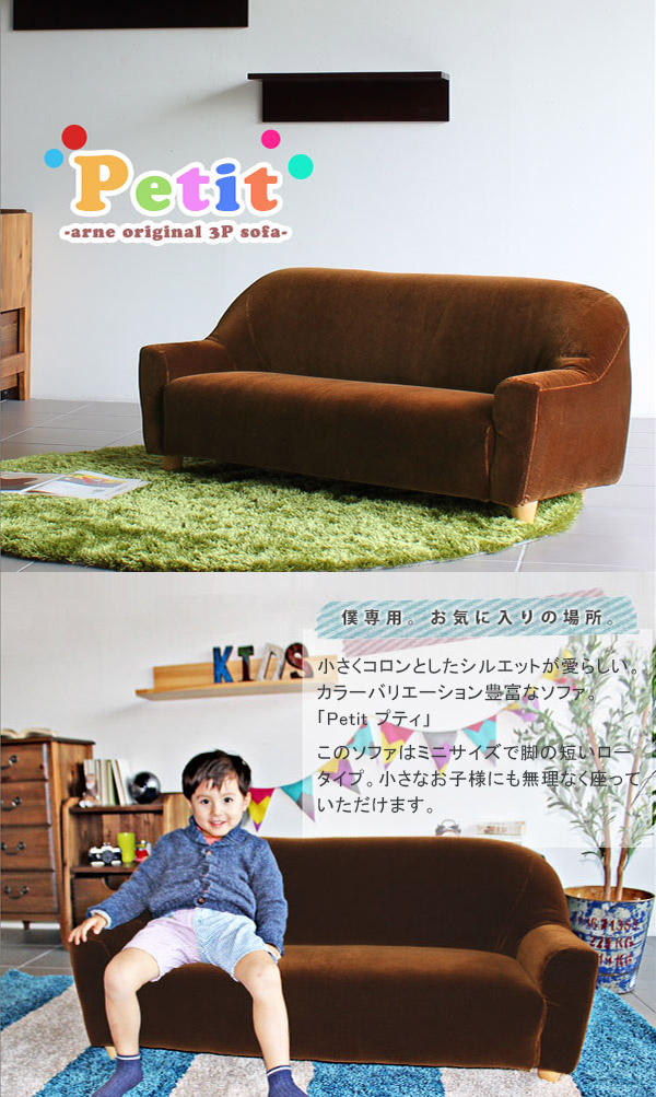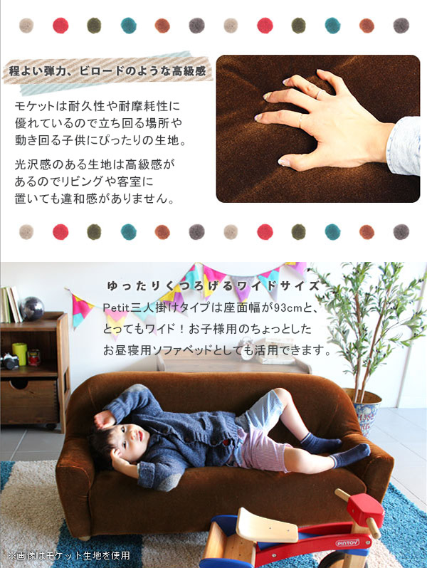 子供用ソファー ソファ ミニソファ キッズソファ ローソファー ベッド 3人掛け モケット Petit プティ 子供 椅子 □
