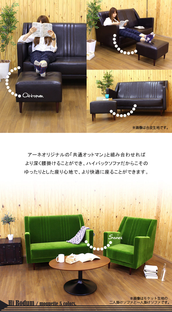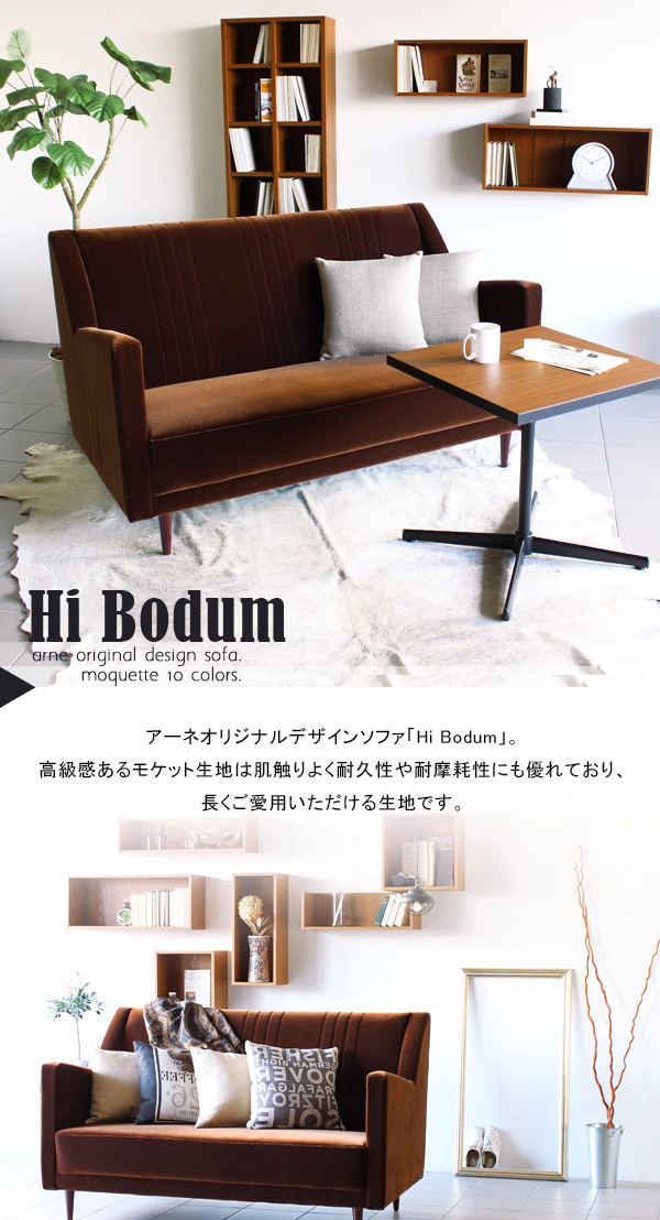 3人掛けソファー ハイバック 三人掛け 北欧 ゆったり おしゃれ ミッドセンチュリー カフェ Hi Bodum 3P モケット ベロア □