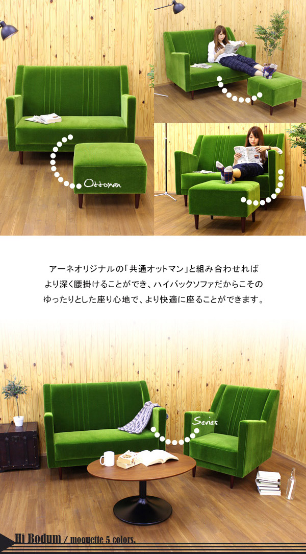 二人掛け ソファ ハイバック 2人掛けソファー ソファー 布張り コンパクト おしゃれ リビング Hi Bodum 2P モケット ベロア □