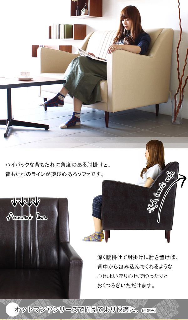 2人掛けソファー 合皮 二人掛け ソファ ハイバック コンパクト おしゃれ リビング Hi Bodum 2P レザー □