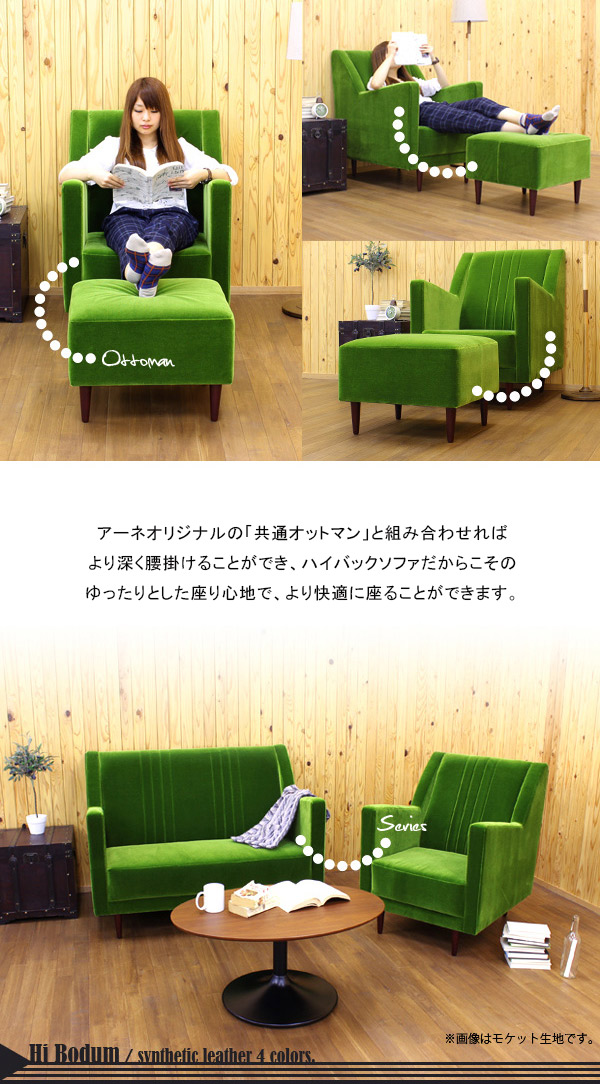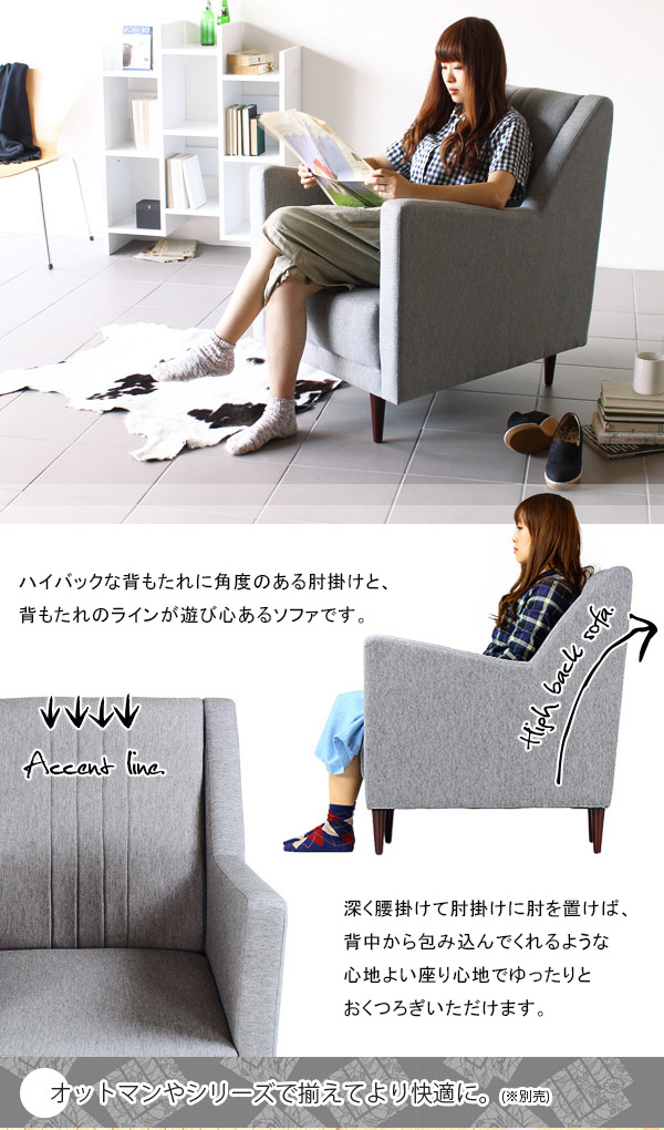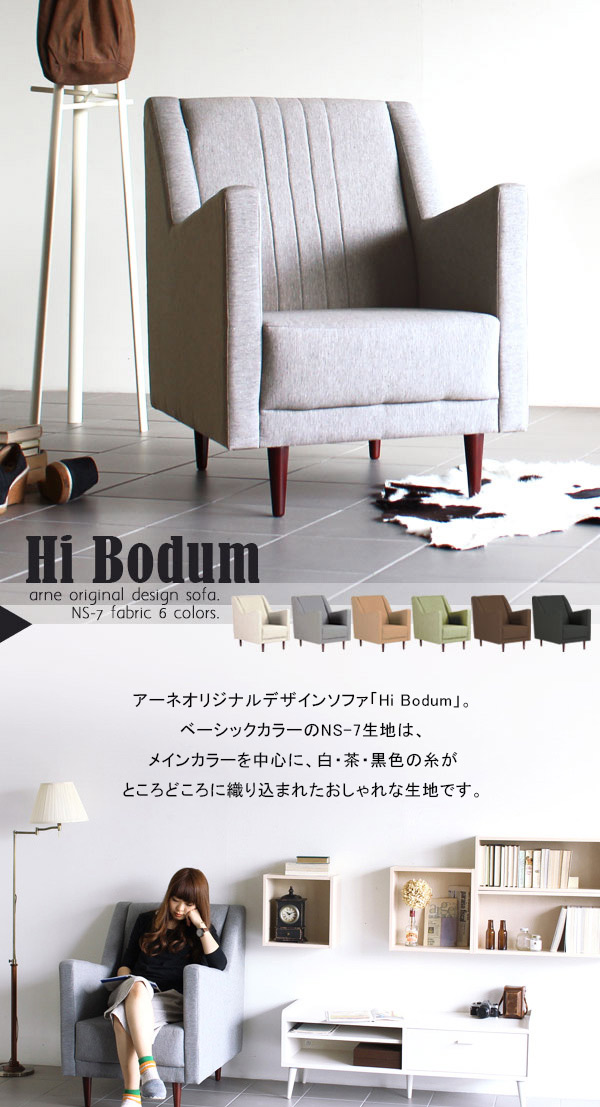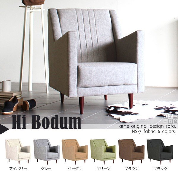 ハイバックソファー 脚付き 北欧 カフェ ソファ 一人掛け おしゃれ コンパクトソファ リビング 書斎 Hi Bodum 1P NS-7 ファブリック 布 □
