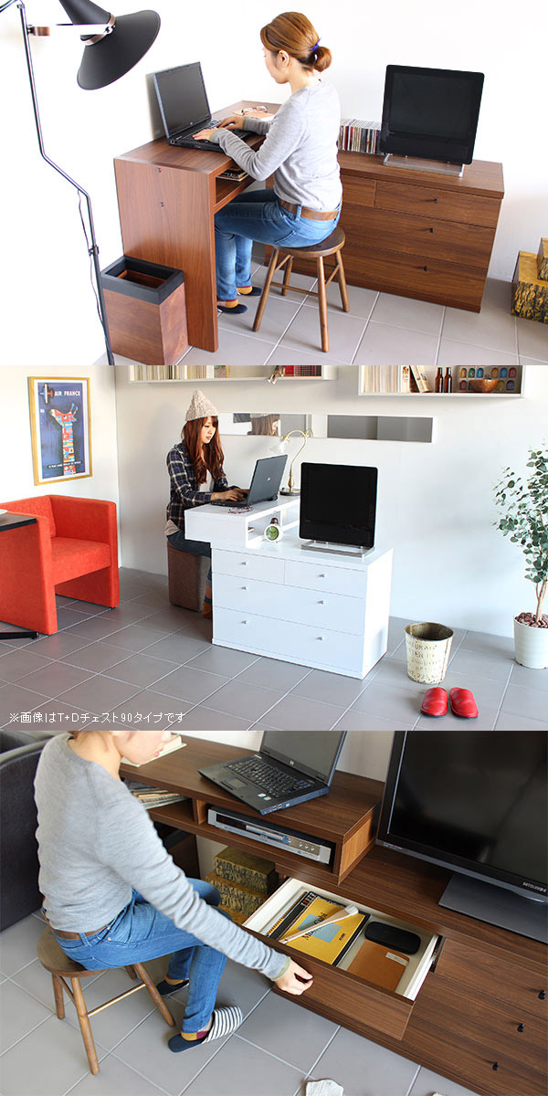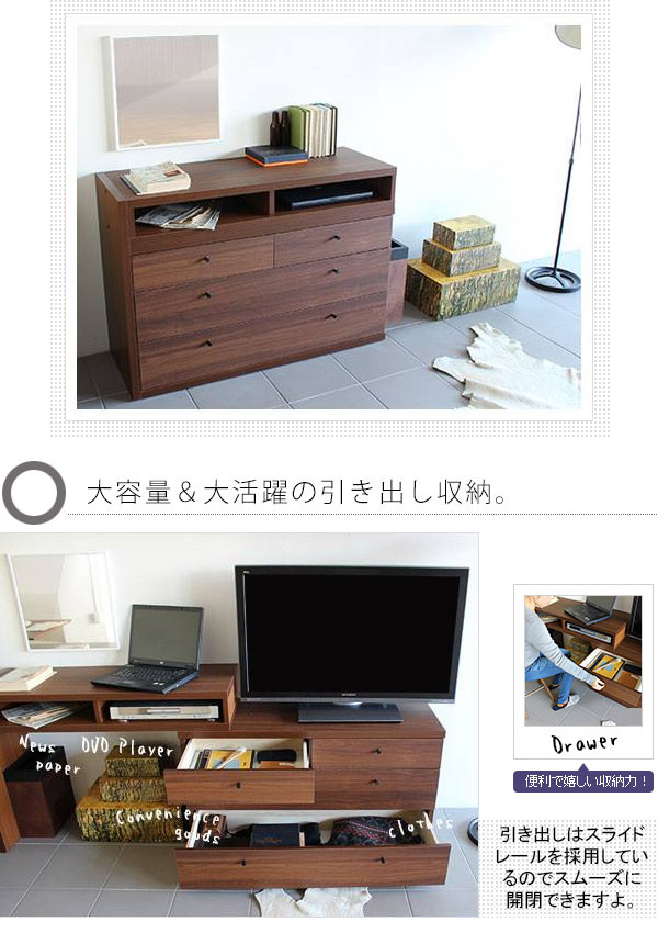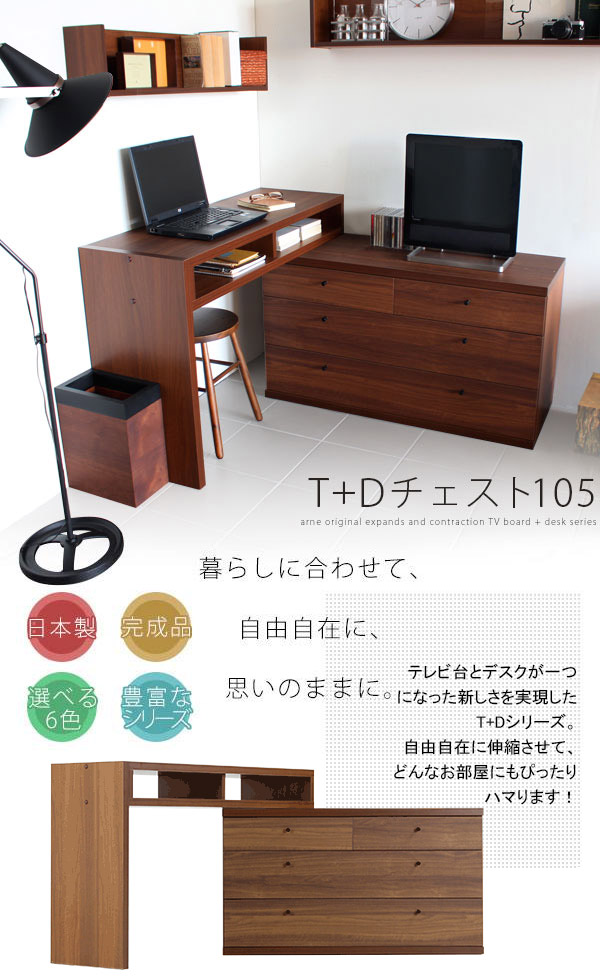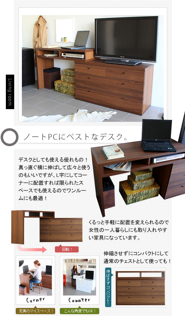 テレビ台 伸縮 コーナー テレビボード おしゃれ デスク チェスト 完成品 ハイタイプ 120 T+D 105チェスト ☆