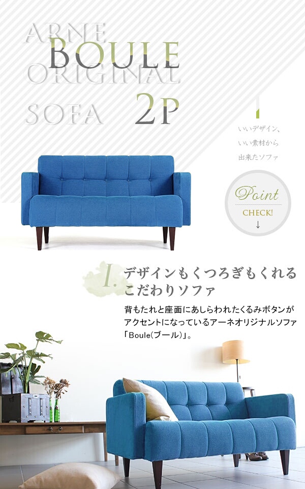 ソファー 2人掛け 北欧 2人 リビング おしゃれ 人気 Boule 2P カレイド生地 □
