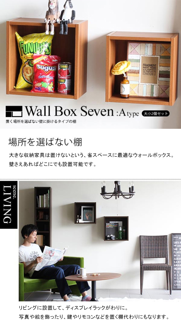 【大小2個セット】 ウォールラック 壁掛け セット 収納棚 幅40 壁掛け収納 ディスプレイシェルフ ウォールシェルフ 木製 日本製 石膏ボード用 インテリア オシャレ 壁付け 壁かけ 賃貸取り付け 壁掛けラック 壁掛け棚 正方形 Wall Box Seven Atype ★