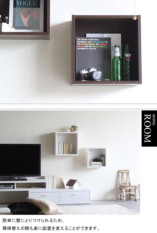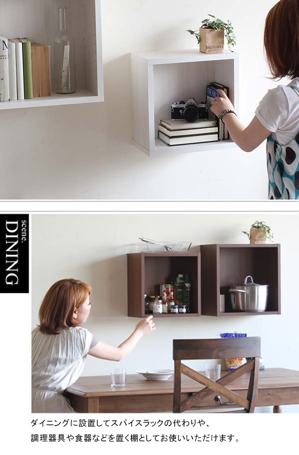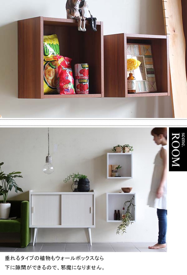 ウォールボックスの取付は取扱説明書をよくお読みの上、付属の壁掛け用フック(石膏ボード壁専用)をお使いください。ウォールラックの落下やラックの上に置いたものの落下により発生した損害に対して当店は一切責任を負いかねますので、十分ご検討の上ご使用ください