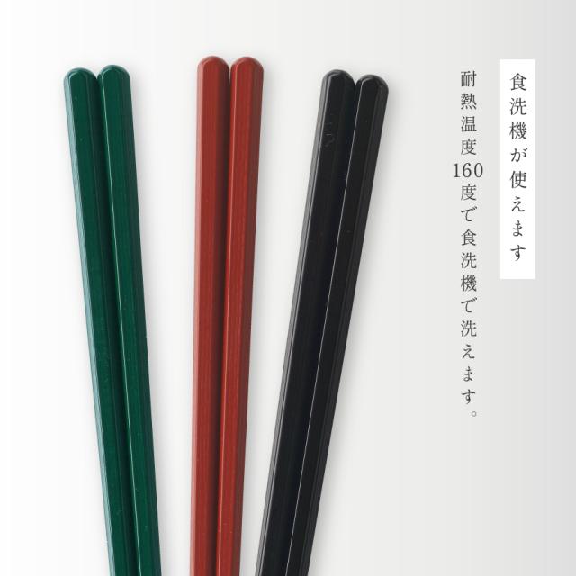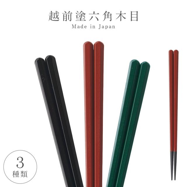 箸 お箸 日本製 越前塗 業務用食洗機対応 食洗器対応 樹脂製 丈夫 強度 耐熱 六角木目箸 20.5cm 22.2cm 男性用 女性用 赤 黒 緑 無地 模様 洗練 家庭用 自宅用 来客 ゲスト お客さん おもてなし 業務用 和食 割烹 正月 メール便 メール便対応