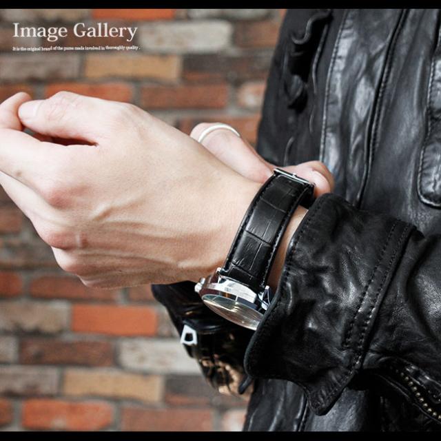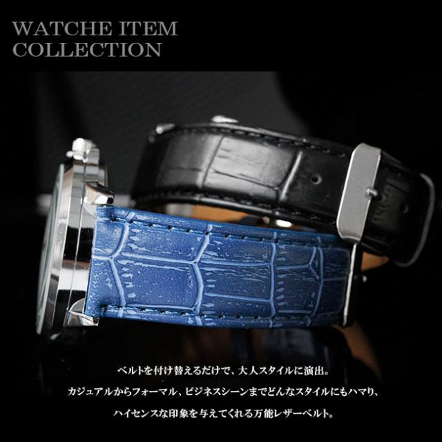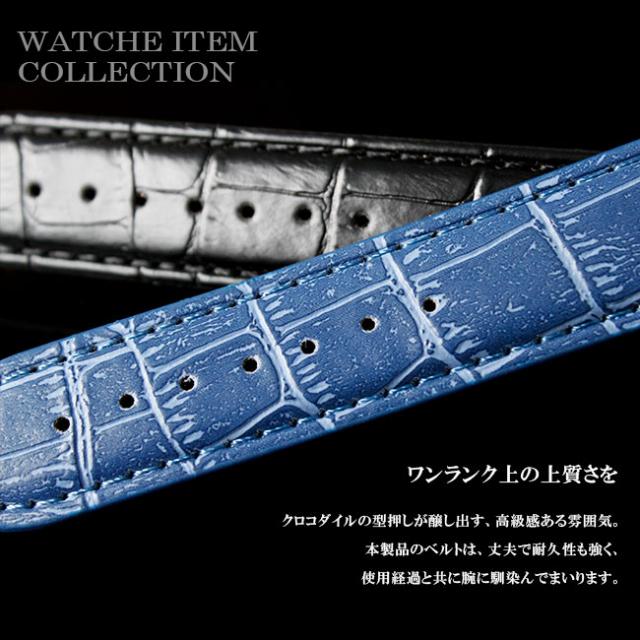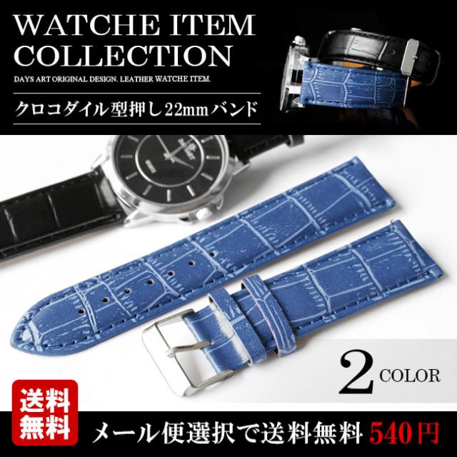 メール便送料無料 時計 ベルト メンズ クロコダイル型押し PUレザーベルト 時計用ベルト ベルトのみ 幅22mm 交換用ベルト 腕時計 【ギフト】 wc016