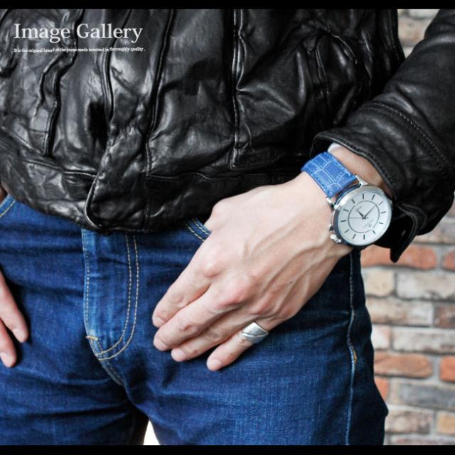 表面にはクロコダイルの型押しが施されており、高級感を演出します。カジュアルにもフォーマルにも使えるシンプルなデザインとなっています。