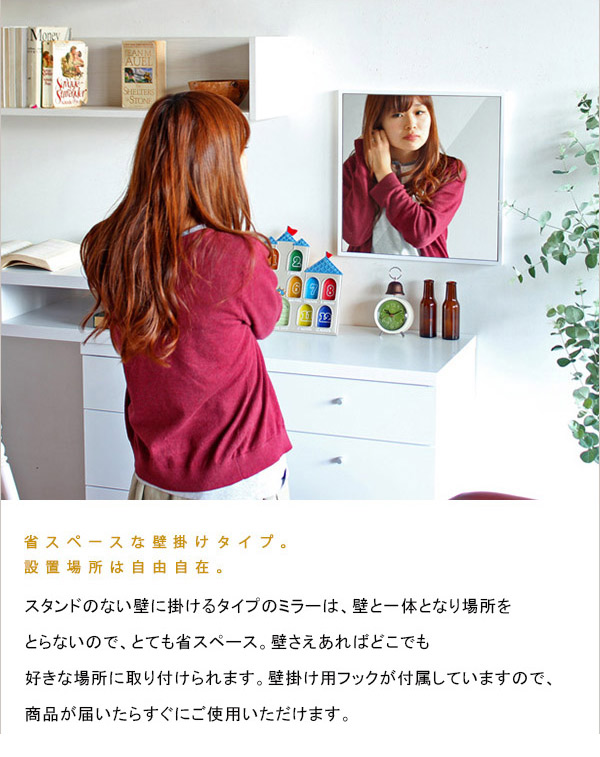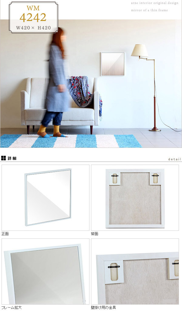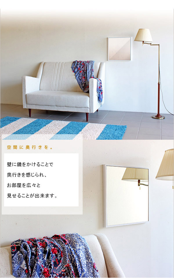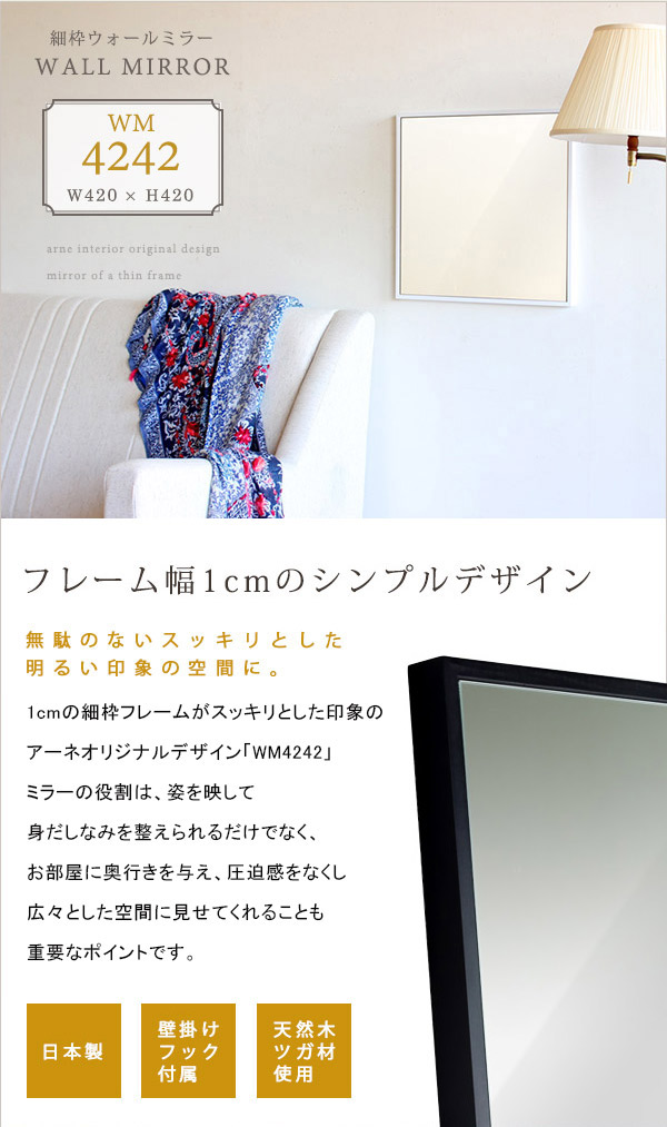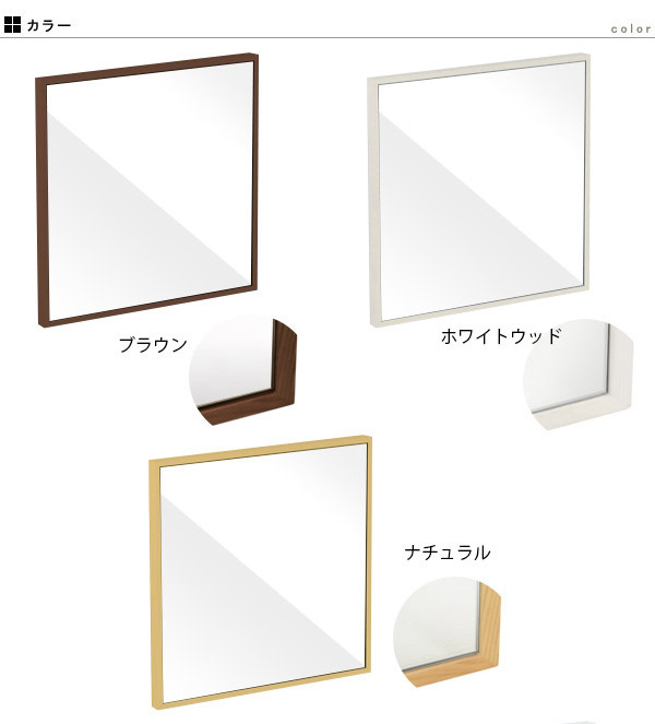 鏡 北欧家具 壁掛けミラー 軽量 ウォールミラー 洗面鏡 木枠 ミラー 壁掛け おしゃれ メイクミラー 北欧 正方形 WM4242 ▼
