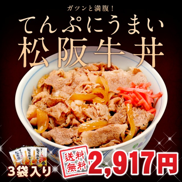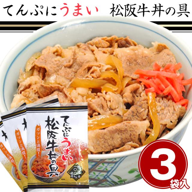 送料無料 テレビ紹介 てんぷにうまい松阪牛牛丼 3袋 高級国産牛肉 レトルト食品 のしOK / 贈り物 グルメ ギフト