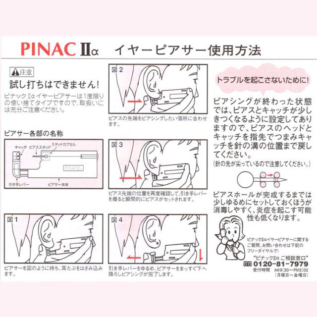 ☆ピナックII。イヤーピアッサーは、ナック社独自の開発によるバネ発射機構のワンタッチ式ピアッサーです。