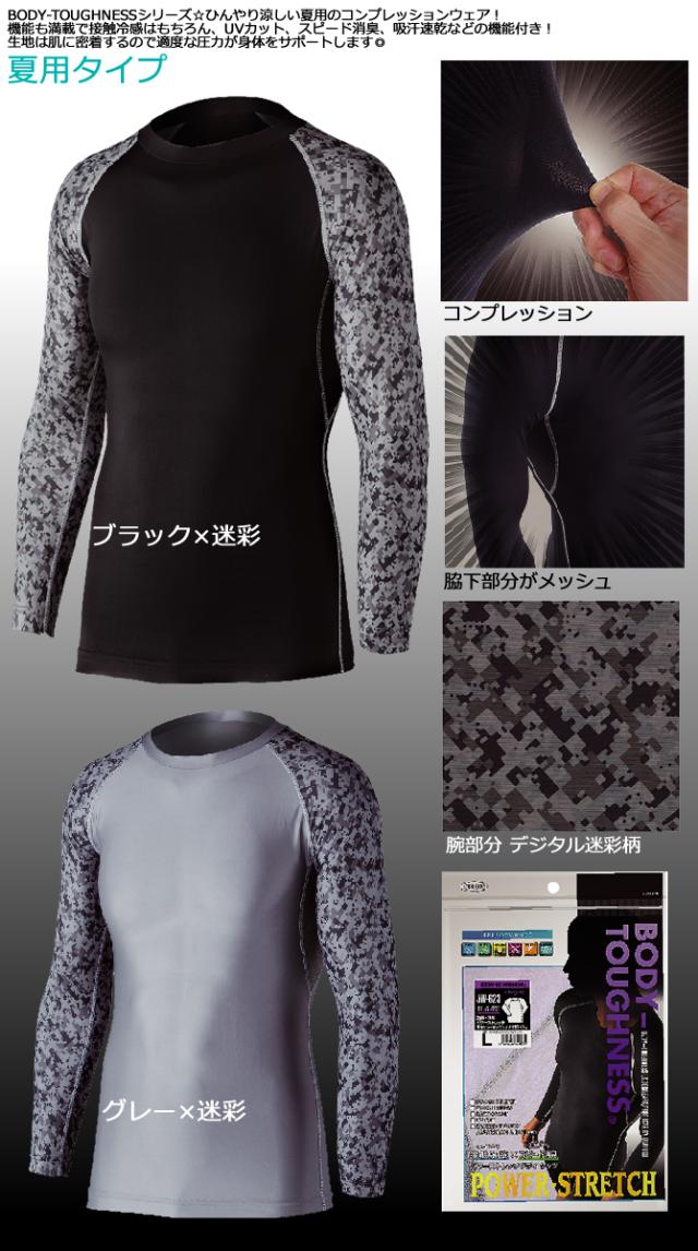 BODY-TOUGHNESSシリーズ☆ひんやり涼しい夏用のコンプレッションウェア!機能も満載で接触冷感はもちろん、UVカット、スピード消臭、吸汗速乾などの機能付き!生地は肌に密着するので適度な圧力が身体をサポートします◎