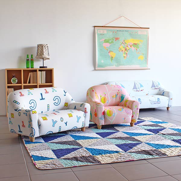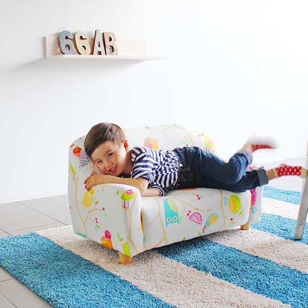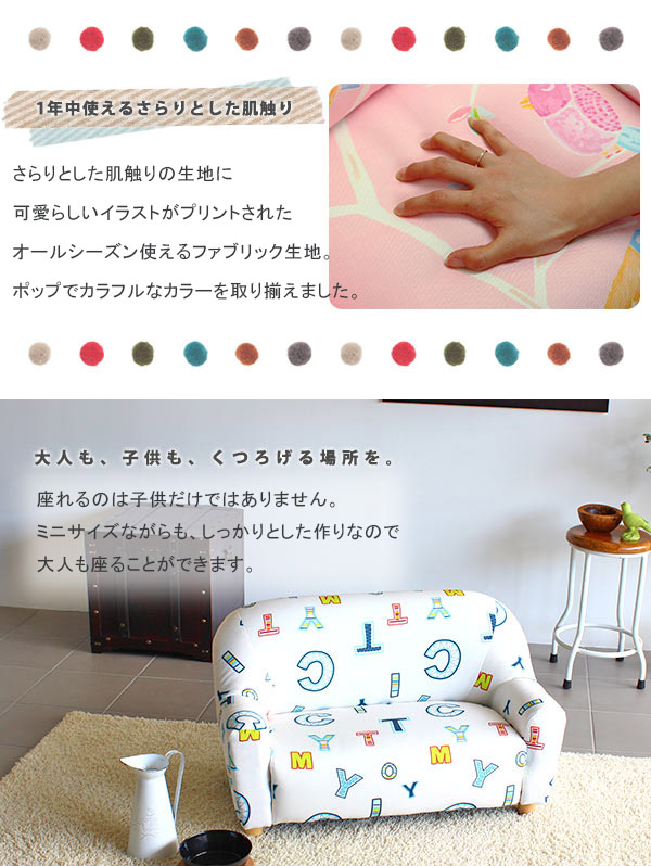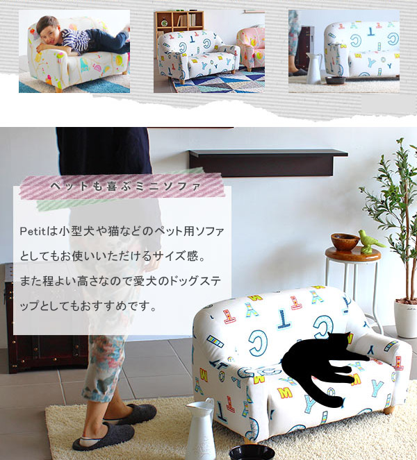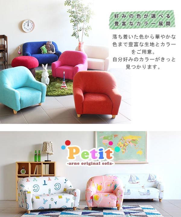 ソファ ソファー ミニソファ キッズソファ ローソファー 2P 2人掛け イラスト Petit プティ 子供用 キッズ 兄弟 姉妹 プレゼント □