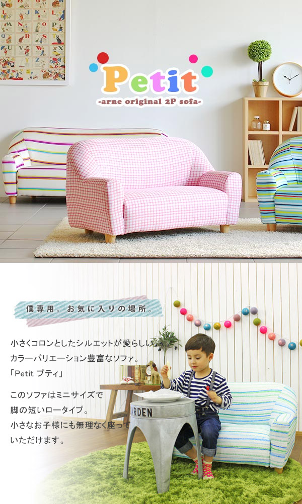 ソファ ソファー ミニソファ キッズソファ ローソファー 2P 2人掛け パターン Petit プティ 子供用 キッズ 兄弟 姉妹 プレゼント □