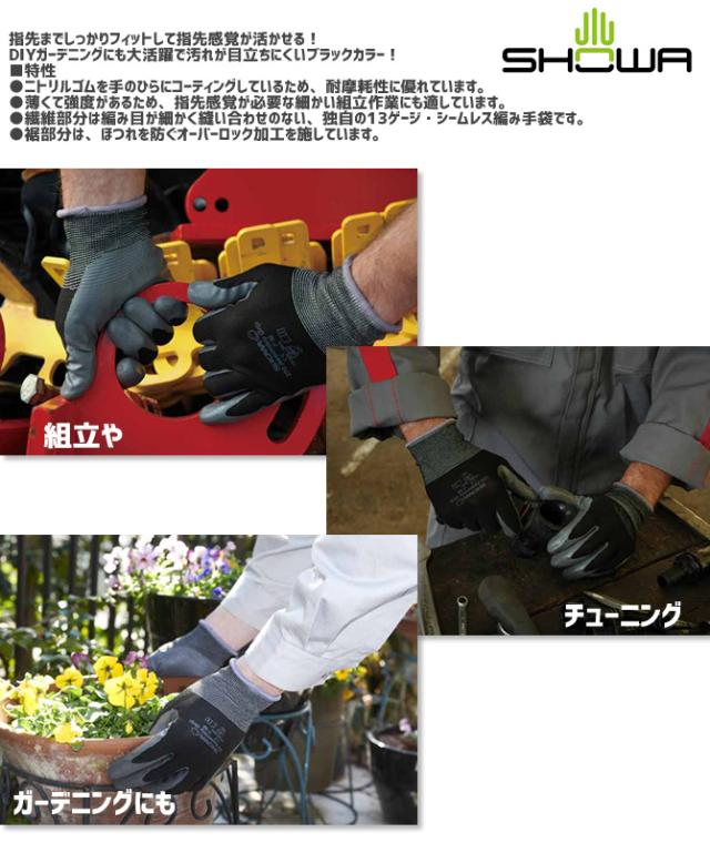 1点までネコポス可 作業手袋 3双組 スベリ止め 組立グリップ ショーワ(SHOWA)シームレス編み手袋
