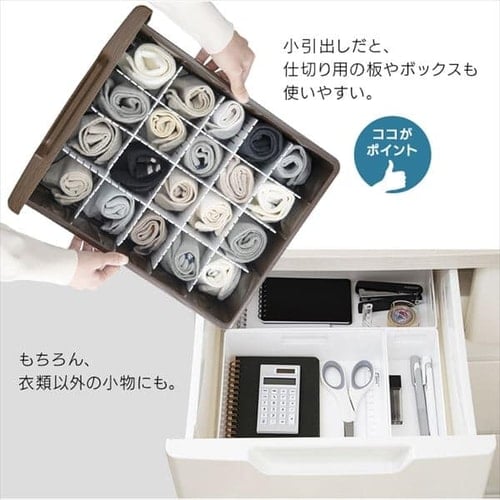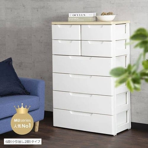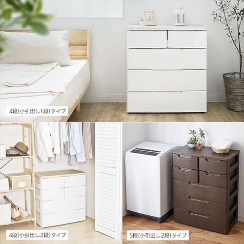 小引き出しには小物、大きい引き出しには衣類など 1つのチェストで様々なものを収納できます。