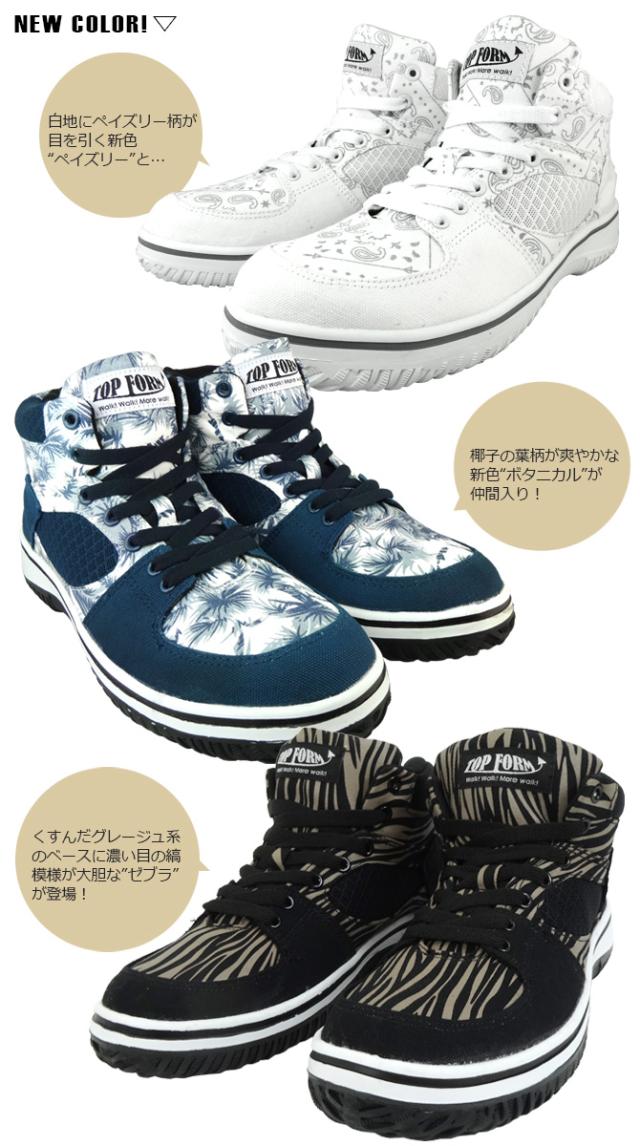 安全靴 スニーカー ミドルカット 迷彩 レオパード TOP FORM JIS規格S級相当 セーフティーシューズ(MG-5590)作業靴 おしゃれ
