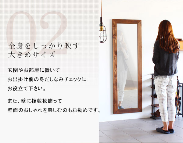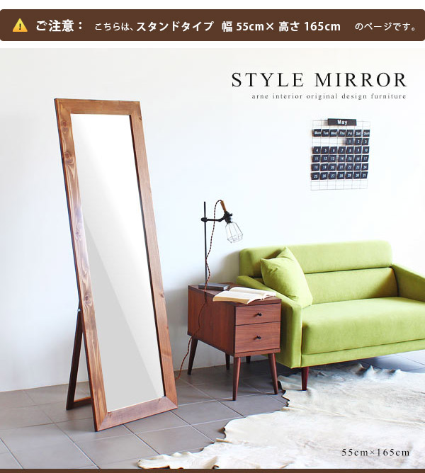 木製スタンドミラー 全身 鏡 大型 ミラー スタンドミラー アンティーク 西海岸風 インテリア 木枠 style SM4015 LBR アーネ ▽