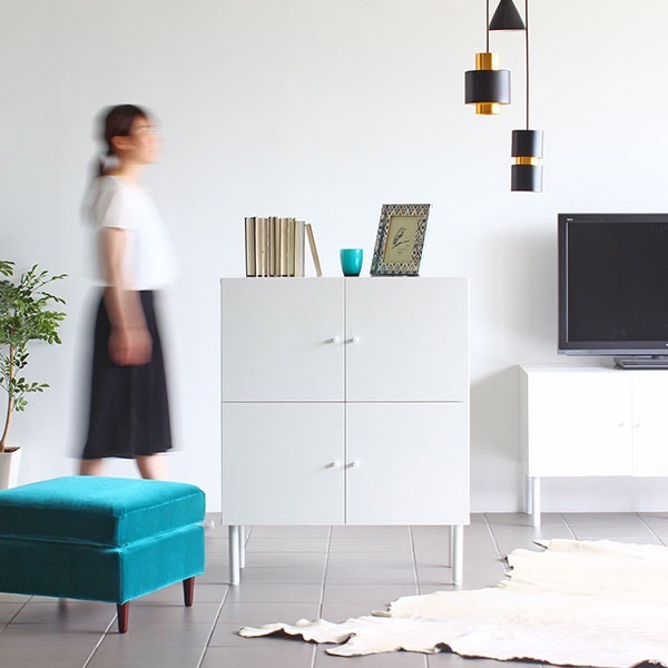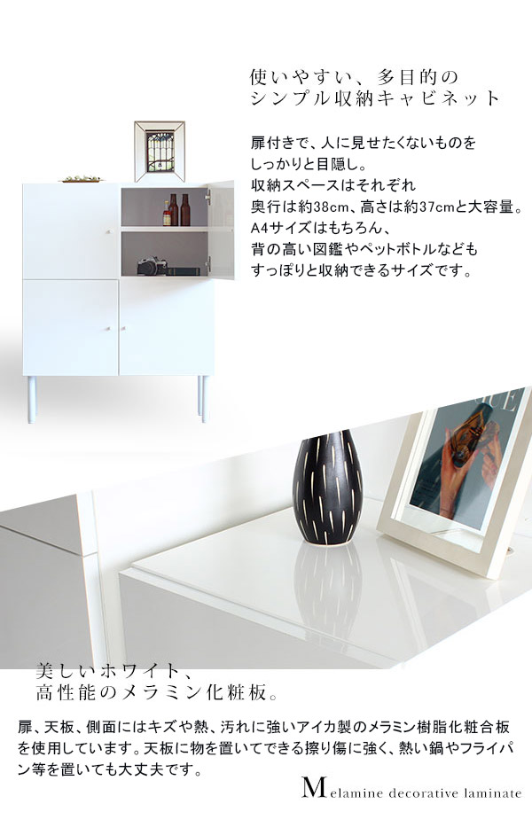 サイドボード キャビネット 白 リビングボード 日本製 完成品 北欧 ホワイト 幅80 収納 2段 nail 80L cab ☆