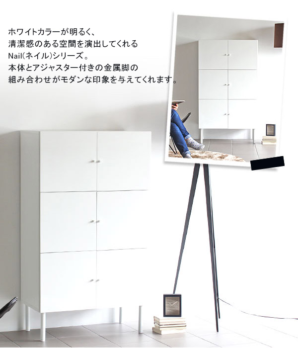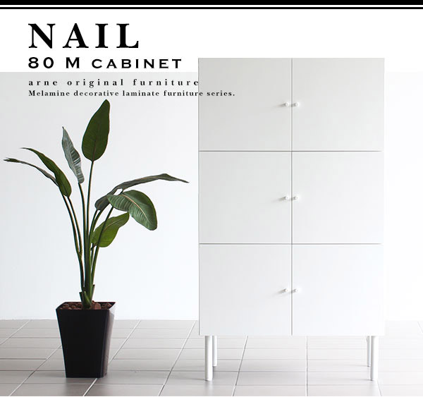 サイドボード キャビネット 白 リビングボード 日本製 完成品 北欧 ホワイト 幅80 収納 3段 nail 80M cabi ☆