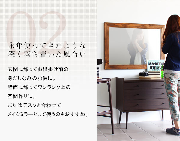 ウォールミラー/壁掛け鏡/北欧/おしゃれ/玄関/鏡/壁掛け/姿見/壁掛けミラー/レトロ/アンティーク/古木調/木製/ウッドフレーム/ミッドセンチュリー/ナチュラル/かがみ/ショップ/寝室/美容院/