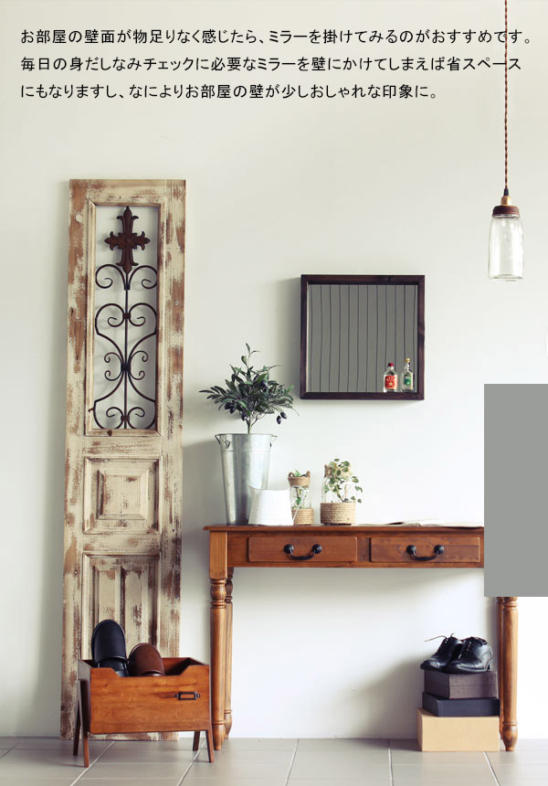 ウォールミラー/壁掛け鏡/北欧/おしゃれ/玄関/鏡/壁掛け/姿見/壁掛けミラー/レトロ/アンティーク/トイレ/洗面鏡/古木調/木製/ウッドフレーム/ミッドセンチュリー/ナチュラル/