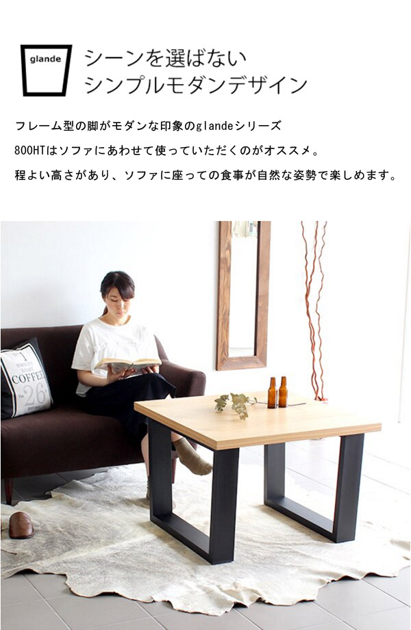 ソファテーブル センターテーブル 北欧 モダン おしゃれ パソコンテーブル 正方形 カフェ 木製 glande 800HT 日本製 ◎