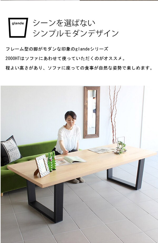 オフィステーブル 長机 ソファーテーブル 木製 会議用テーブル 机 ワークテーブル リビング 大型 北欧 おしゃれ glande 2000HT 日本製 ◎