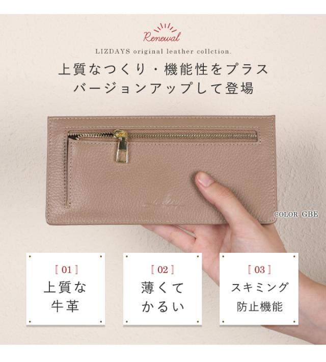 薄型 長財布 スキミング防止 本革 牛革 レディース メンズ 財布 スリム 薄い財布 カードケース マチ付き小銭入れ 札入れ サブウォレット 結婚式 冠婚葬祭 旅行 ウォレット RFID 磁気防止 LIZDAYS リズデイズ スタイルオンバック【lz-0827r】