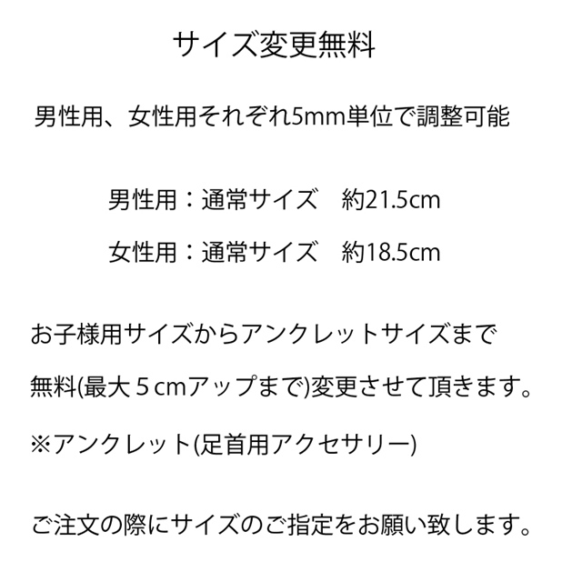 ■小さいサイズから最大5cmアップまでサイズ変更無料! ※お子様とペアや、サイズ大きめサイズ注文でアンクレットとしてもOK!