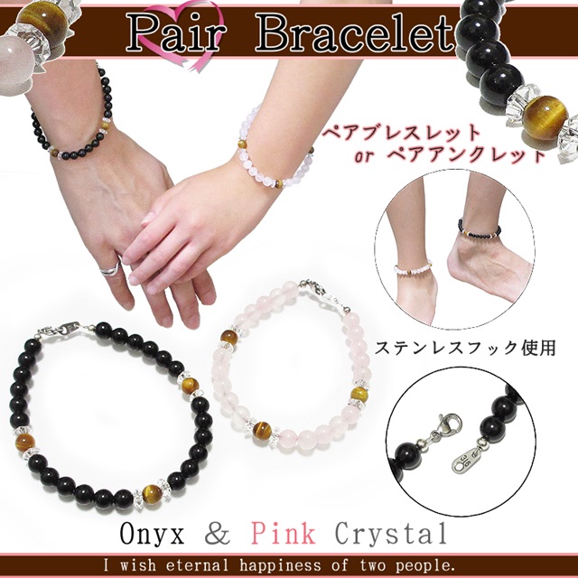 ペアブレスレット 2本セット 天然石 ステンレス ワイヤー パワーストーン プレゼント 限界価格 ペアルック オニキス ピンク水晶 タイガーアイ ペア ルック 送料無料 おまけ付 金運 ラッピング無料 ギフトBOX付 サイズ変更無料 クリスマスプレゼント