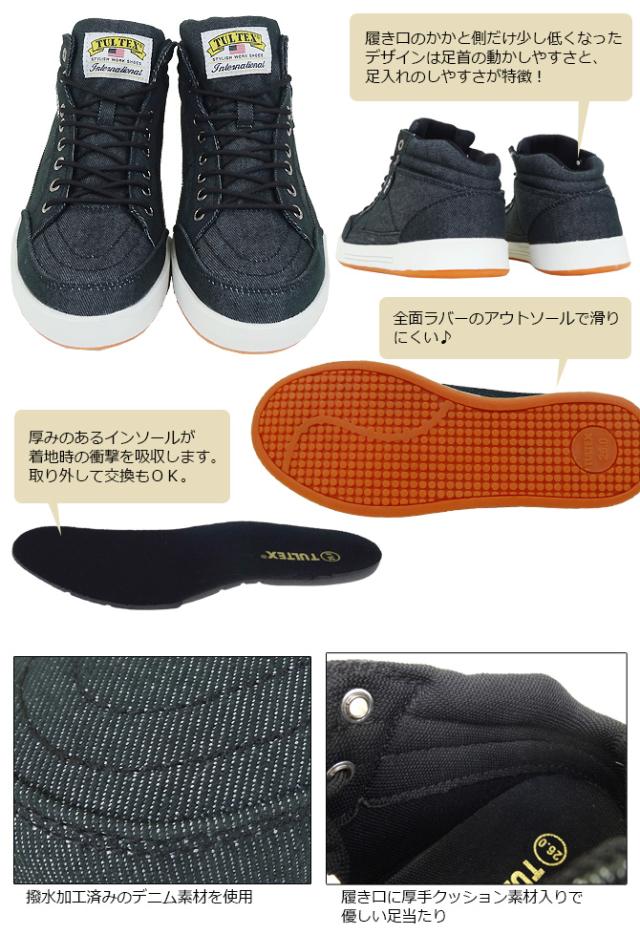安全靴 スニーカー タルテックス TULTEX デニム ミドルカット セーフティーシューズ 撥水 作業靴 おしゃれ メンズ AZ-51644