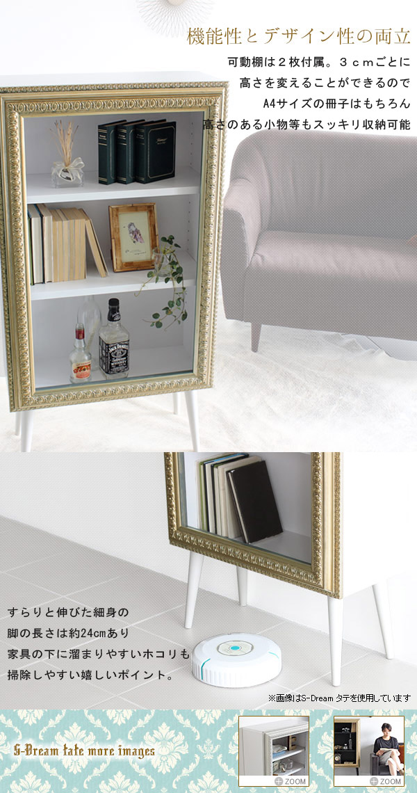 本棚 アンティーク家具 サイドボード おしゃれ 北欧 白 スリム ディスプレイラック ホワイト 棚 S-Dream タテ ☆