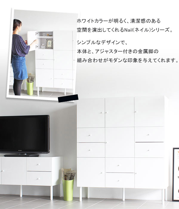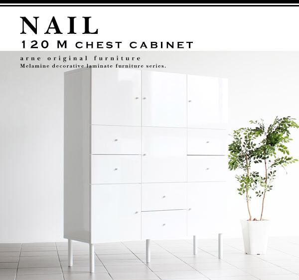 キャビネット チェスト ホワイト 収納 ラック リビングボード nail 120M chest cabi ☆