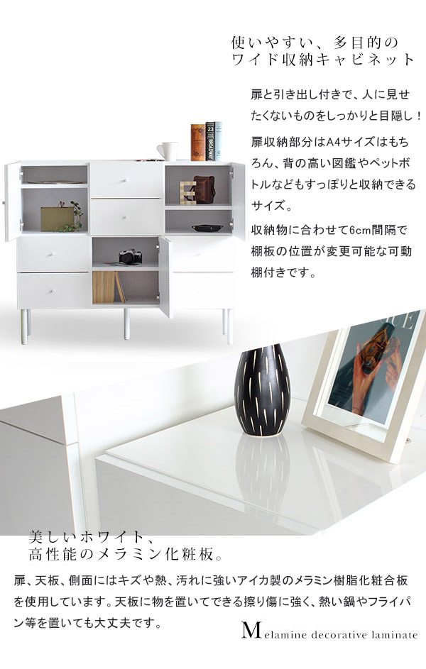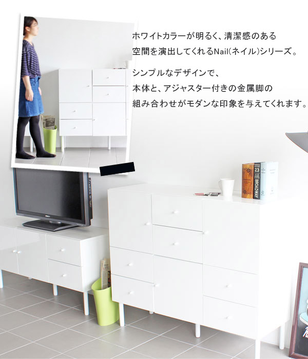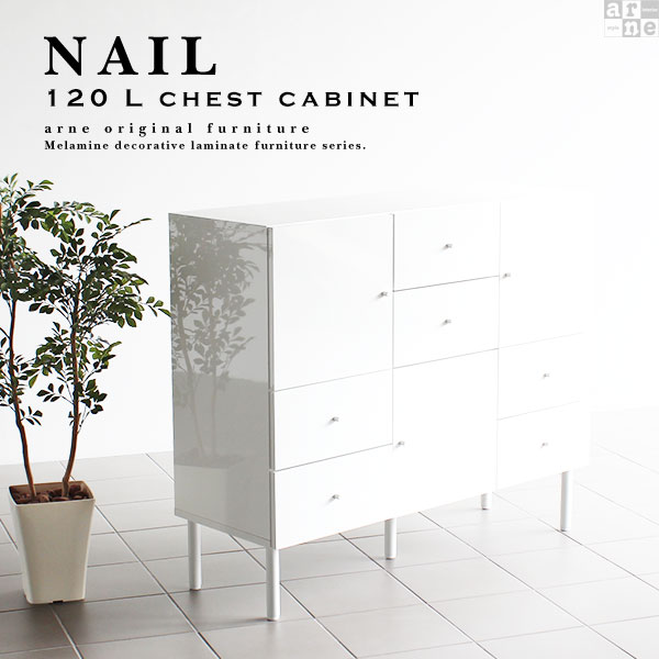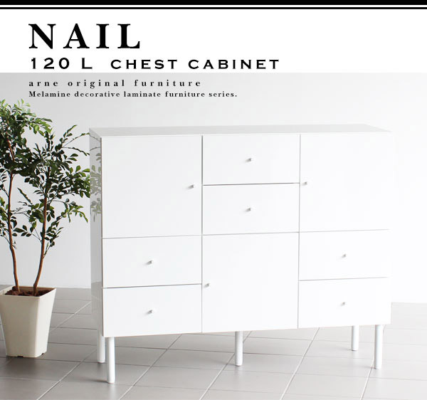 キャビネット チェスト ホワイト 収納 ラック リビングボード nail 120L chest cabi ☆
