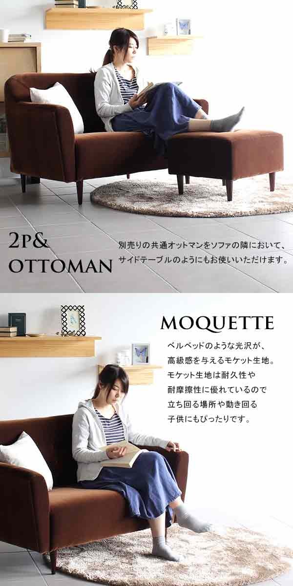 二人掛けソファー コンパクト ソファ 2人掛け 北欧風 おしゃれ カフェ Roy02 2P モケット ベロア □