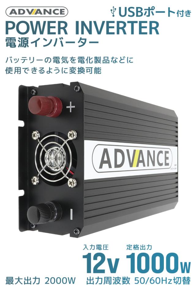 インバーター 12V 100V カーインバーター DC-ACインバーター 定格1000W 最大2000W DC12V/100V 疑似正弦波(矩形波) 非常用電源 車中泊 車 スマホ充電 発電機 防災グッズ 防災用品 家庭用電源 変圧 変電