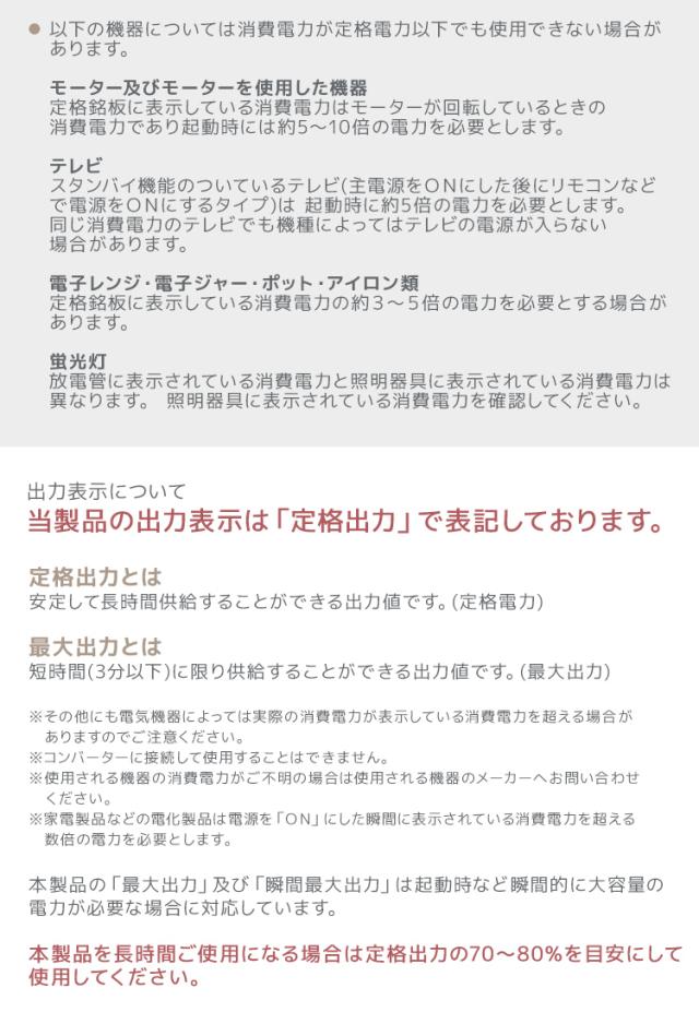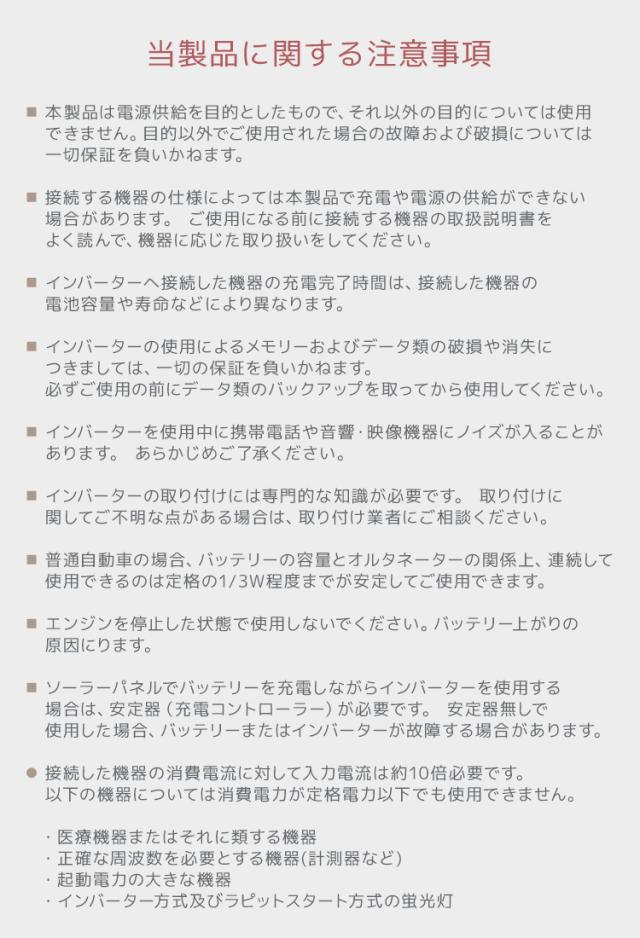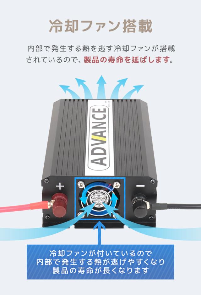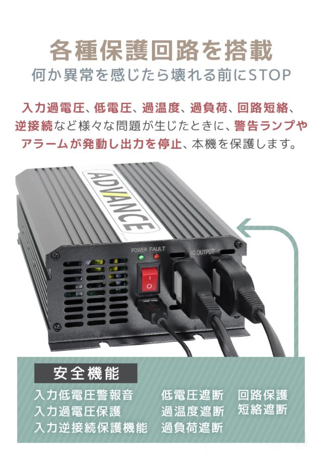 | 商品機能 | 回路保護 入力低電圧警報音 低電圧遮断 過温度遮断 過負荷遮断 短絡遮断 入力過電圧保護 入力逆接続保護機能 |