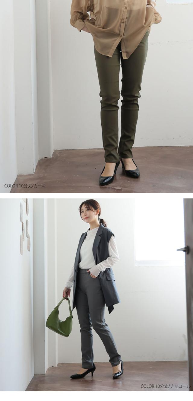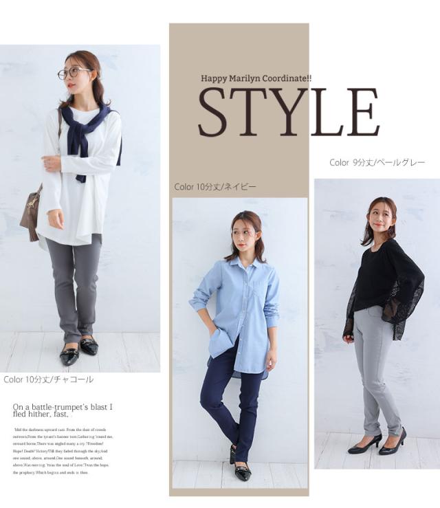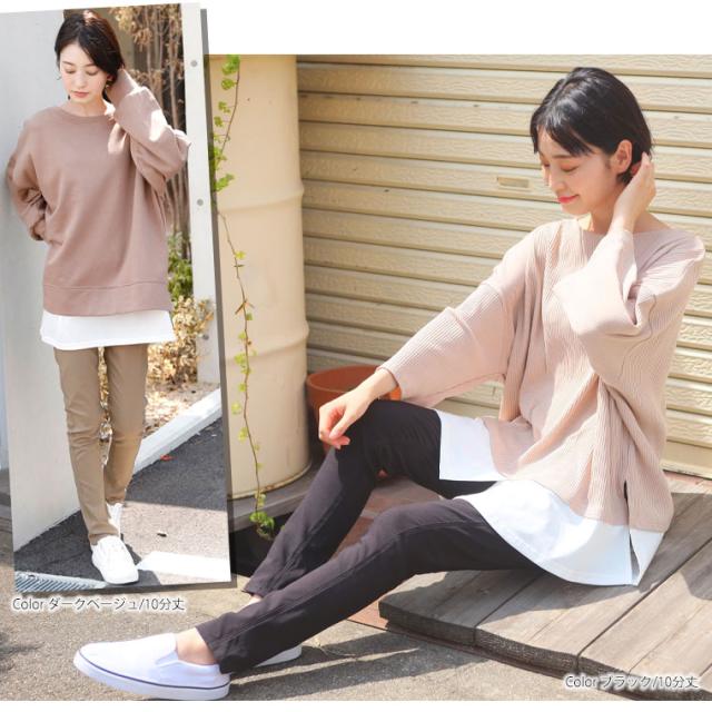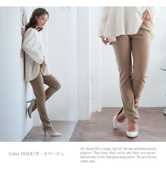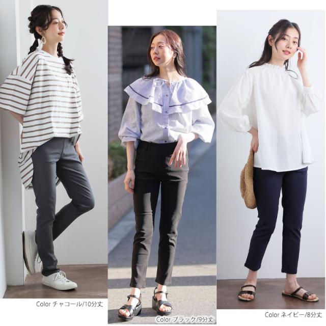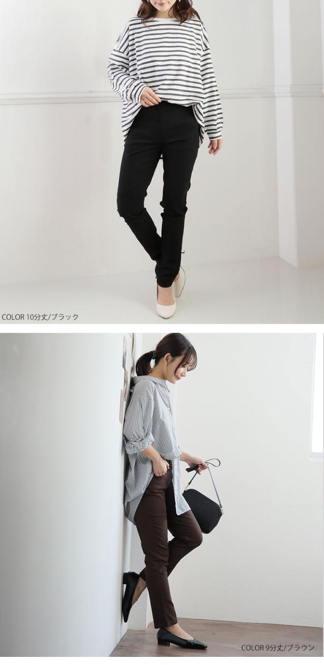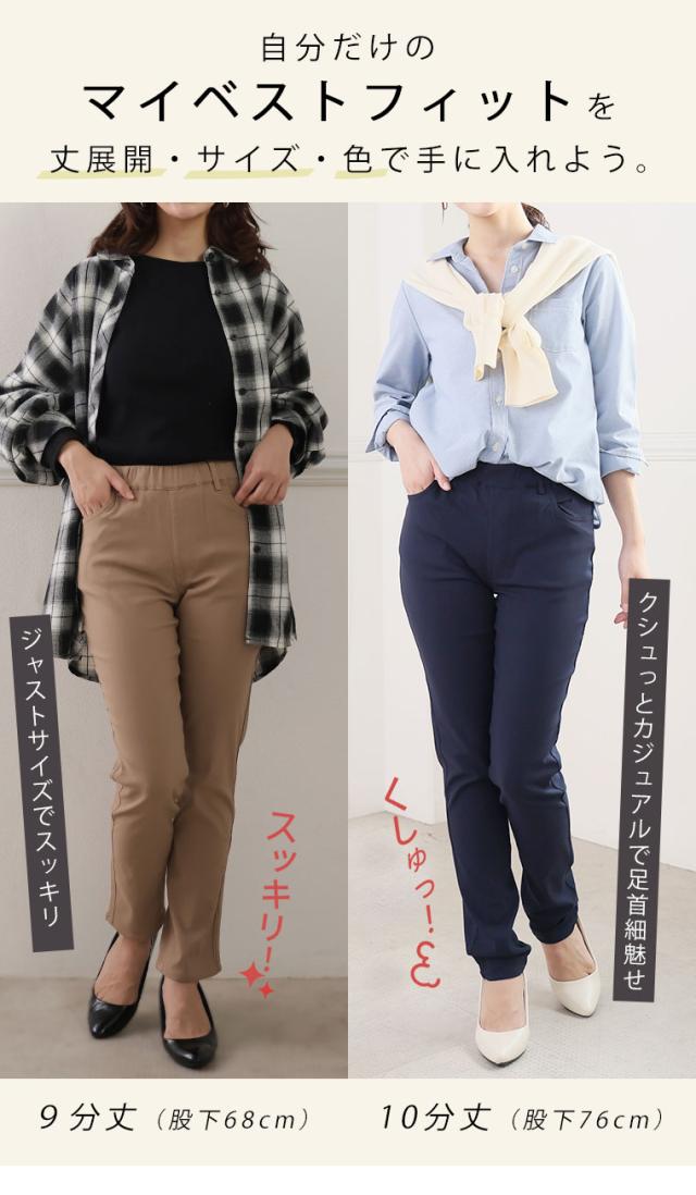 9分丈:丈は床上10センチでした。10分丈:丈は床上3センチでした。どちらもジャストサイズで着用できました。ものすごい伸縮性に驚きと快適な履き心地が病みつきになりそうです