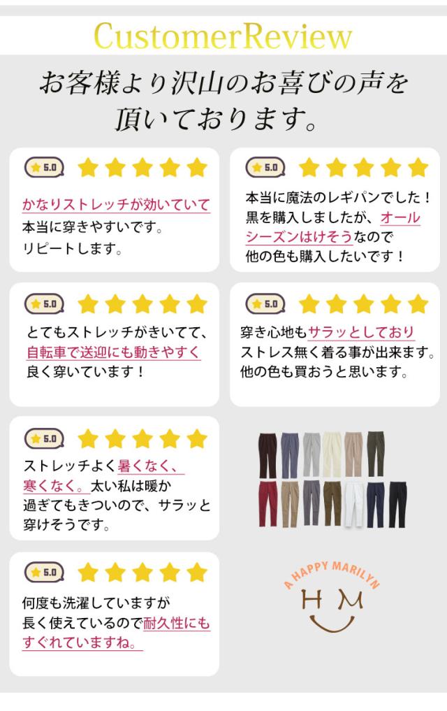 - 好みの色が在庫無しでワンサイズ大きめを注文しましたがぴったり履けました。ストレッチでワンサイズ下からワンサイズ上までのサイズで着れるタイプで重宝しそうです。
