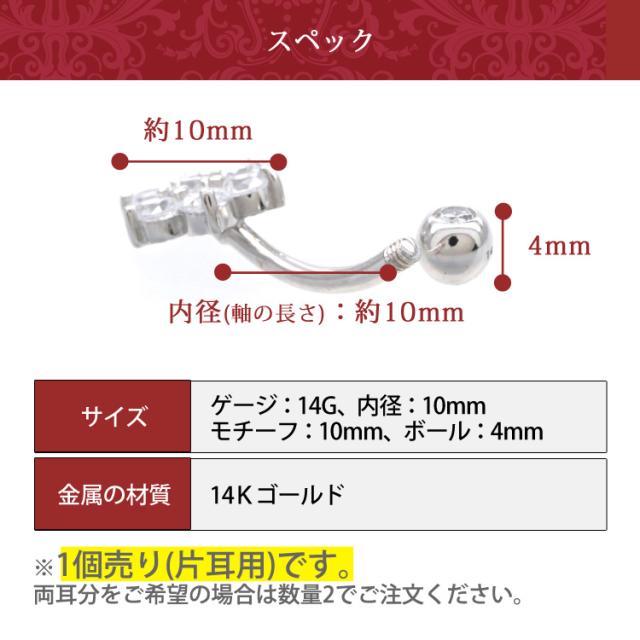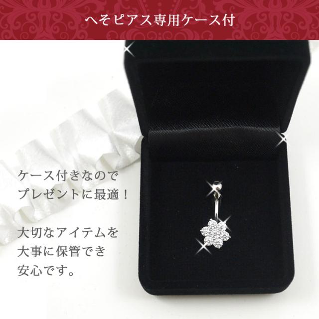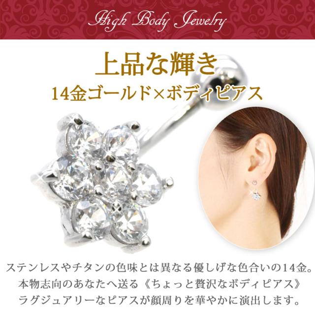 ボディピアス 【ケース付】 へそピアス 14金 14Kホワイトゴールドスノーネイブル 14G ヘソピアス